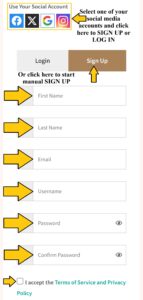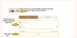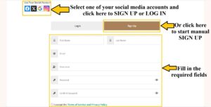 - You can now choose between logging in or registering. You can use Your Social ID Accounts, or filling out the form and the required data, thin your account will be available.